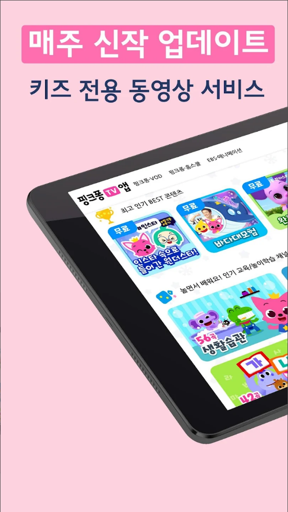 - 핑크퐁TV앱에는 유해한 광고가 없어 어린이들에게 100% 안전한 환경을 제공합니다.