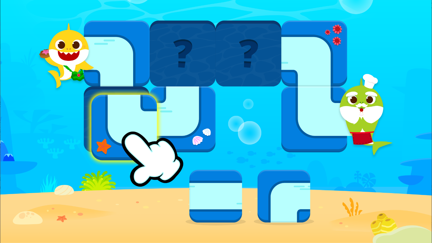 - 타일 조각들을 하나씩 맞춰 길을 완성해보세요. 아기 상어가 목적지에 도착할 수 있도록 도와주세요.